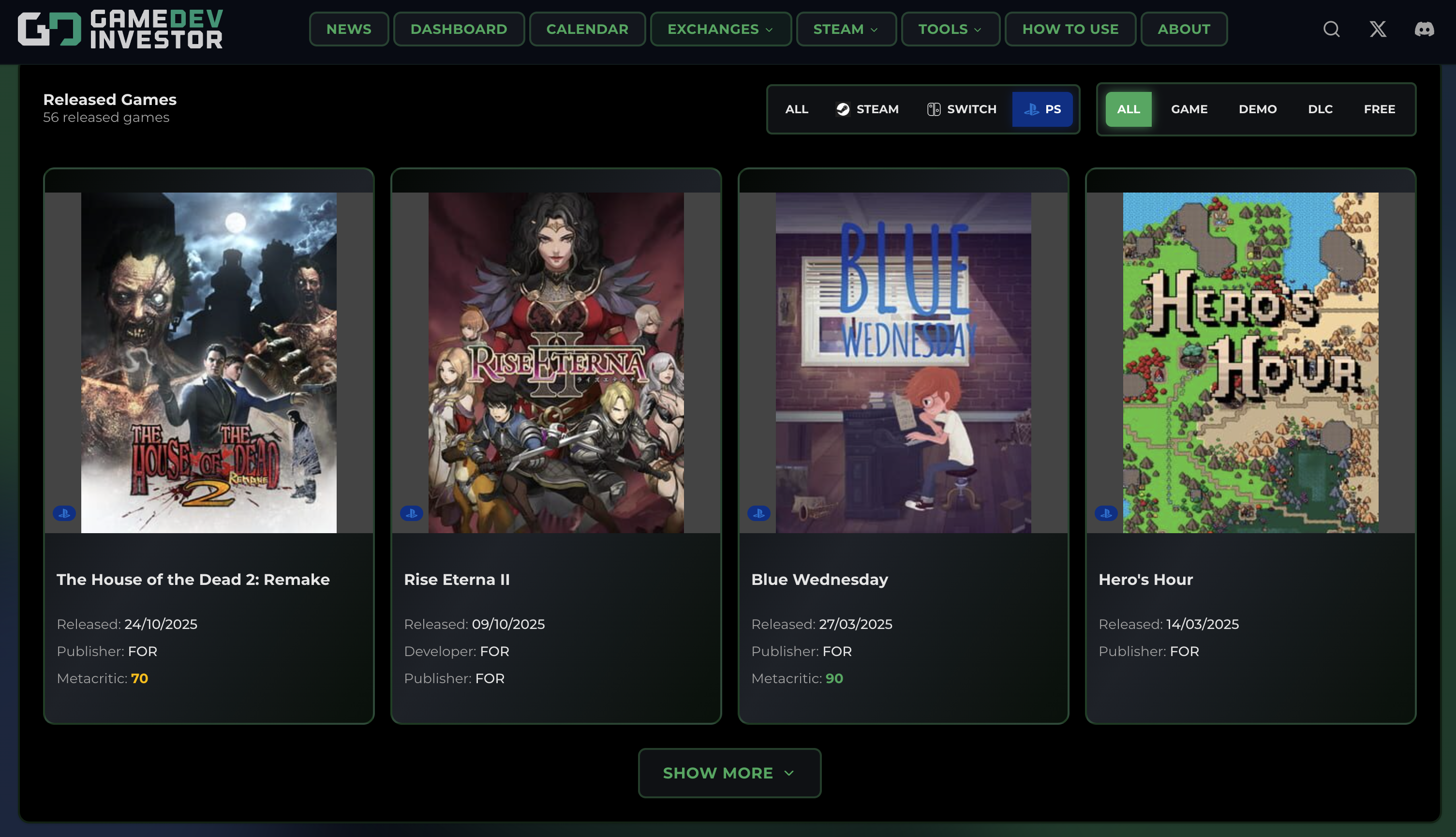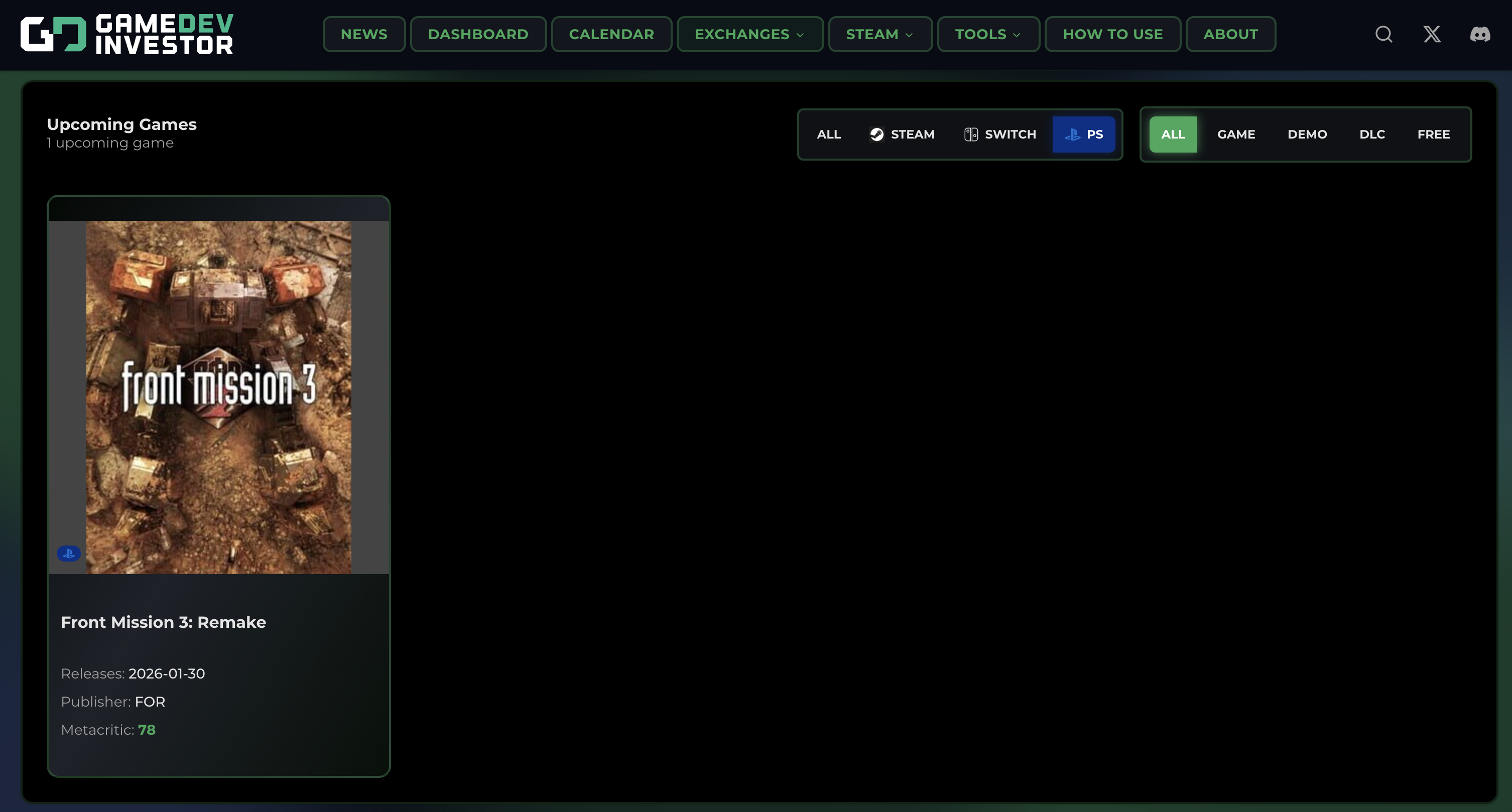 GameDevInvestor expands into PlayStation coverage using IGDB data, adding console release visibility, timelines, and publisher context despite limited metrics availability.